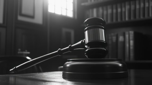 Lawsuit gavel in courtroom setting; legal proceeding
