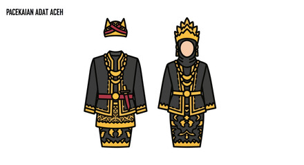 Traditional Acehnese Wedding Attire for Bride and Groom.