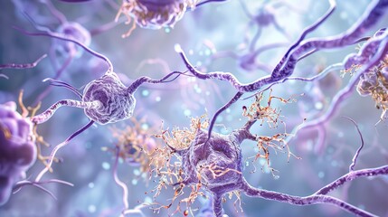 Alzheimer's disease infographic with elderly man, memory loss, neurodegeneration, beta amyloid plaques, tau tangles, and treatment options