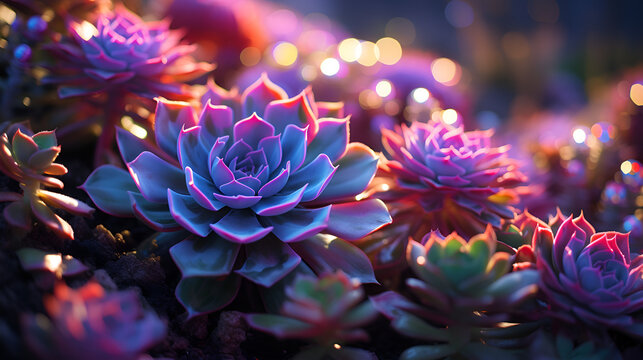Succulents Amidst a Vibrant Field of Purple Flowers