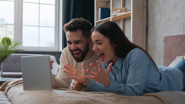 Happy joyful young hispanic woman office worker completed work on project dancing in the workplace Female Businesswoman, agent, employee or freelancer feels satisfied with laptop work well done Indoor