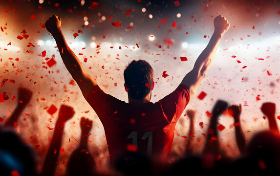 Celebration moment with trophy and vibrant confetti burst in modern office setting