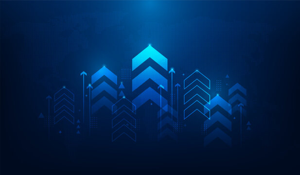 business finance arrow growth global technology background. graph stock market trading investment. trend profit income.