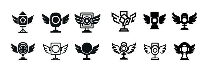Set of winged trophy icons in black and white