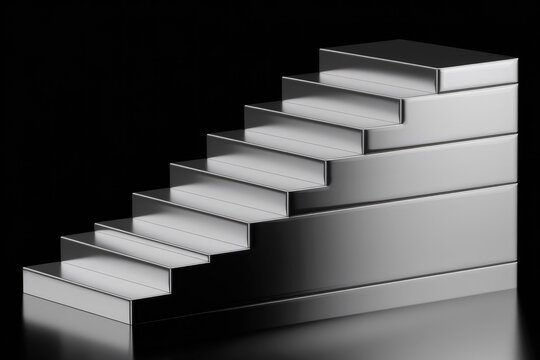 A sleek, metallic staircase ascends against a dark background, symbolizing progress and achievement.