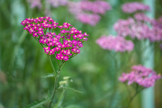 Pretty dark pink Achillea millefolium flowers in a garden