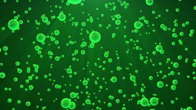 Green gel texture with bubbles, abstract skincare beauty product on light background. Hyaluronic acid serum for skin care, clear aloe and vitamin enriched.