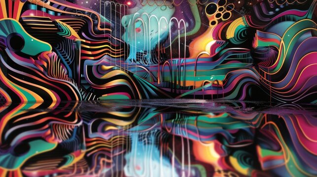 A funky and psychedelic backdrop with a mix of vibrant colors and abstract shapes taking inspiration from the acid jazz and funk movements.