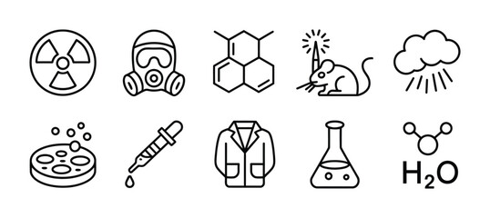 Science and laboratory equipment line icons depicting research and experimentation tools vector