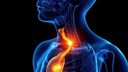 Stomach acid reflux causes heartburn and discomfort in the esophagus. Concept Gastroesophageal Reflux Disease, Heartburn Relief, Esophageal Discomfort, Stomach Acid Remedies