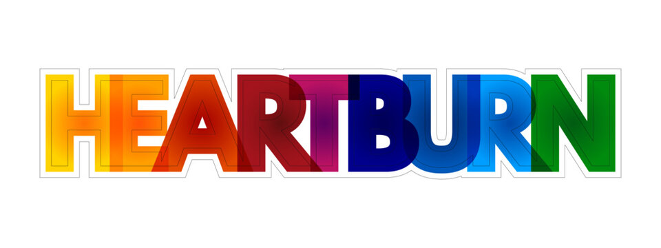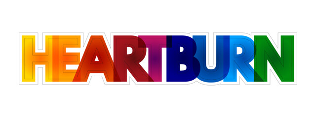 Heartburn is a burning feeling in the chest caused by stomach acid travelling up towards the throat, colourful text concept background