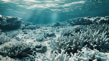 3D render of coral reefs dying from ocean acidification due to climate change