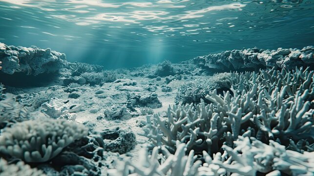 Dead reef due to coral bleaching, global warming, climate change