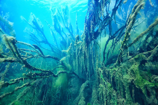 submerged trees flooded underwater / lake fresh jungle water ecology beautiful landscape