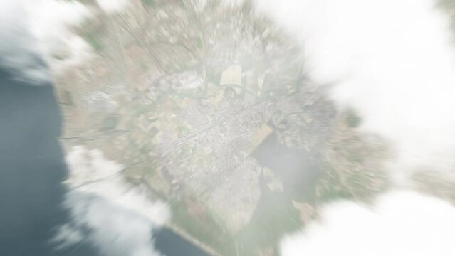 Earth zoom in from space to Acilia, Italy. Followed by zoom out through clouds and atmosphere into space. Satellite view. Travel intro. Images from NASA