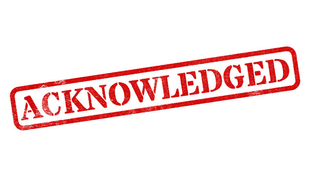 Acknowledged red rubber stamp isolated on transparent background with distressed texture effect
