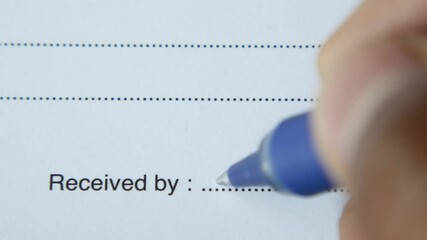 A shot of a person signing a package delivery receipt with a ballpoint pen, capturing the moment of acknowledgment, isolated on a white background
