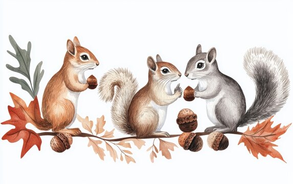 Squirrel enjoying acorns amidst a colorful autumn forest, capturing the essence of nature's beauty and wildlife.