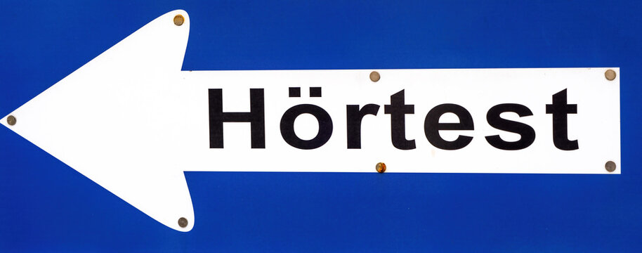 Older woman or female pensioner with a hearing problem make a hearing test and may need a hearing aid, she looking on a selection