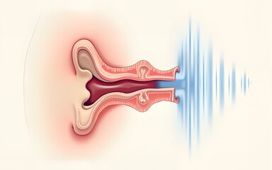 Ear anatomy. Illustration showing the way of a sound wave to the brain