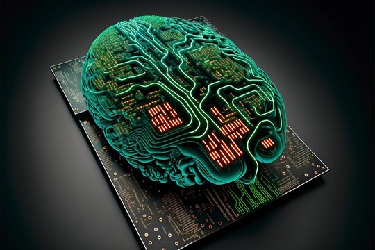 illustration, brain of a digital system, science and technology, 3D illustration.