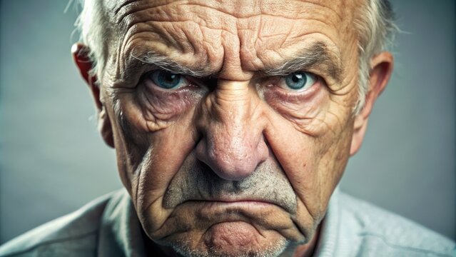 His scowl deepened as he gazed at the world through narrowed eyes, a storm of displeasure brewing on his weathered face.