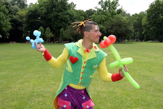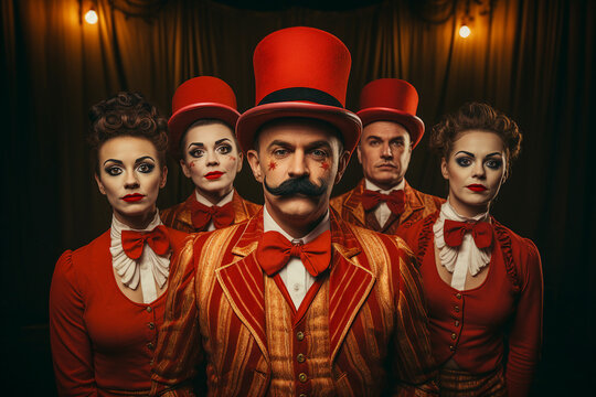 Generative AI image of funny and frightening circus actor actress performance colorful bright costume