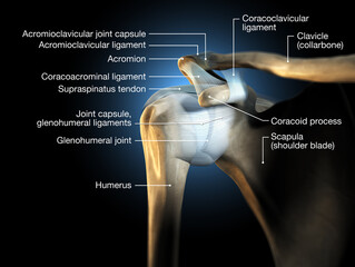 Shoulder joint, glenohumeral joint, medical 3D illustration