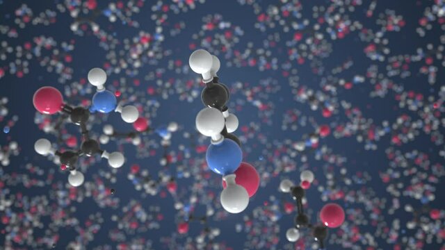 Acrylamide molecule, conceptual molecular model. Scientific looping 3d animation