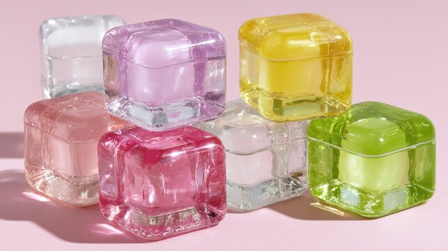 Clear acrylic cubes arranged on light background, showcasing their geometric shapes and transparency. These interconnected blocks create modern and minimalistic aesthetic