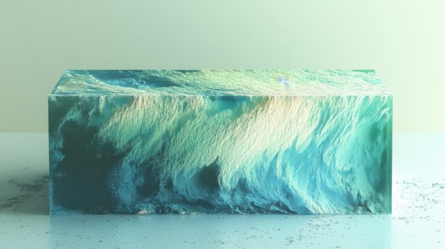 Textured acrylic block with swirling aqua patterns and bright highlights