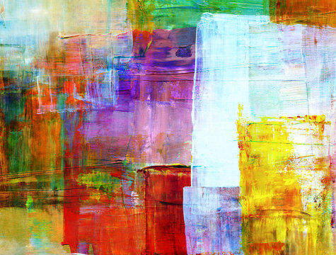 A celebration of color and form with an abstract floral composition on geometric blocks.