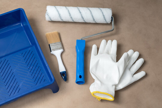 Paint coating and protection of wooden surfaces.Brush that covers wooden planks and beams with varnish for interior work in the color of oak.