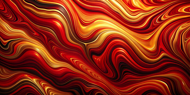 Abstract wavy background resembling red and gold acrylic paint on a black surface, imitating marble , abstract, wavy