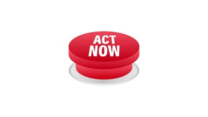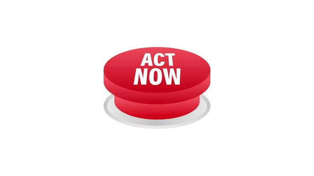 Red round act now button on white background. Motion graphics.