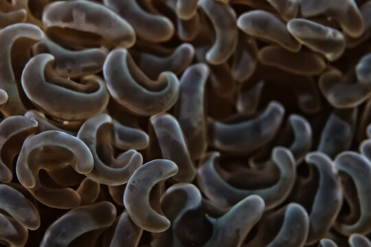 Abstract close-up view of anemone actinia texture on a vibrant underwater reef in the sea, showcasing intricate patterns and colors, actinia, texture, close-up
