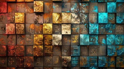 Artistic representation of the periodic table highlighting the transition metals, lanthanides, and actinides with distinct colors and borders