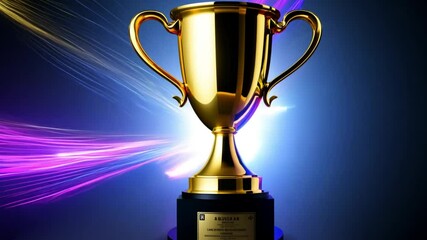 Dynamic Trophy Zoom with Vibrant Light Streaks and Rapid Spin