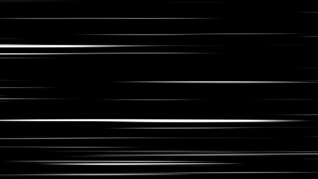 Anime speed lines background. Radial comic zoom effect with fast glowing motion. Horizontal and diagonal manga lines on black. Seamless, loop animation for action or transition overlays. 4k