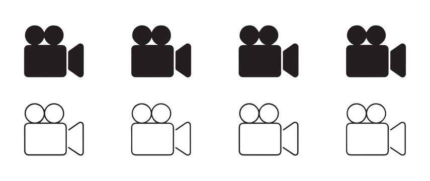 Video recorder icons set black solid and outline styles for film production vector