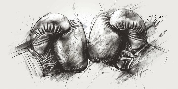 Two boxing gloves, sketch, black and white.