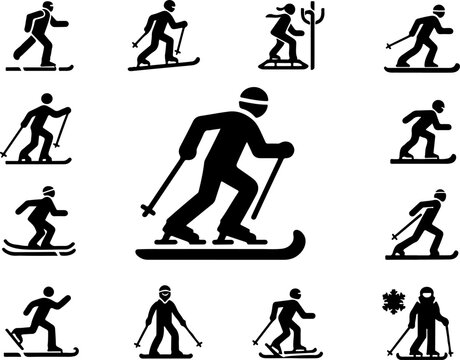 vector sketch illustration collection of silhouette sketches design images icons logos symbols people having fun skiing sports