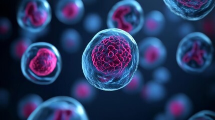 Satellite cells, stem cells aiding muscle regeneration, activation state, 3D illustration