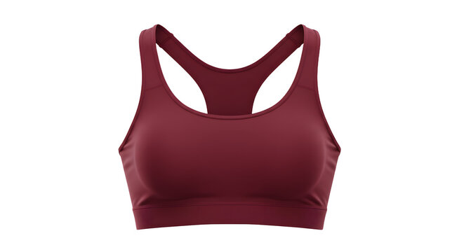 Stylish maroon sports bra displayed on a neutral background, ideal for fitness apparel marketing and active lifestyle promotion