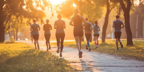 Energetic community runners in sunlit park