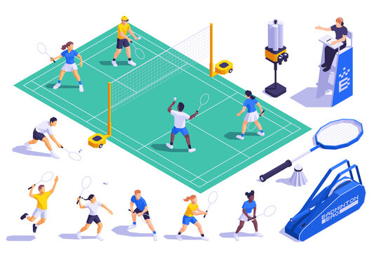 Badminton Equipment On Court.