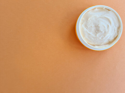 Cosmetic anti-aging cream on an orange background.