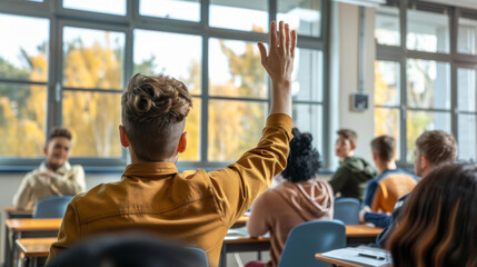 Student raising hand in class