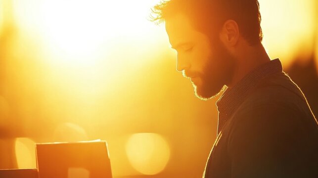 A dramatic image of a voter silhouetted against a bright backdrop of stars and stripes