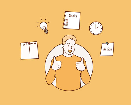 New Year Plans. Notebook With 2022 Goals And Words Plan, Action And Goal. Hand drawn style vector design illustrations.